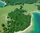 Brijuni. Across the Fazana channel, near Pula, lie the Brijuni islands, forming a seven kilometers long necklace between Pula and Rovinj. Nature, nudged along by man, has created a real paradise here. Before the newly founded tourist centres in Italy took over, the Brijuni were an exclusive European summer resort. The peerless beauty of the national park of Brijuni with its rich harmony of flora and fauna, historical monuments and modern hotels still draws politicians and other distinguished guests from all over the world. The stone from Brijuni has been used since Roman times in many buildings in Pula, Trieste, Venice and Vienna. It provides the backbone to an island where you will find deep shade under rich pine vegetation. On the biggest island - the Veli Brijun there is a zoo with many kinds of animals.